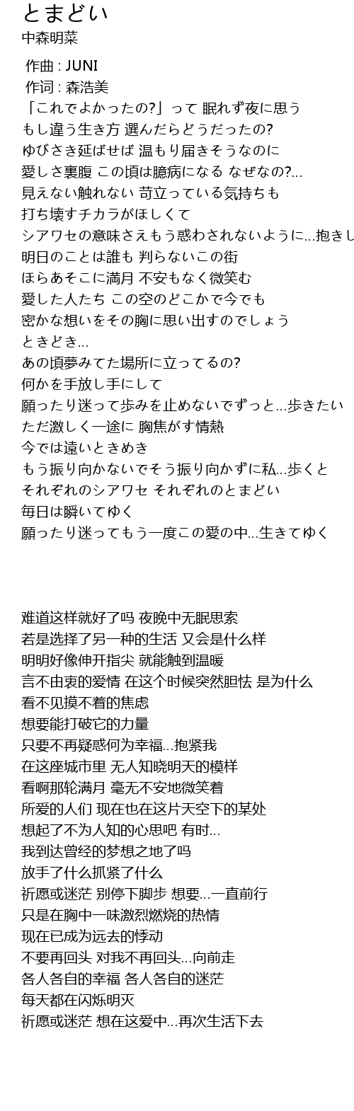 | [00:47.950] | 愛しさ裏腹 この頃は臆病になる なぜなの?… |
