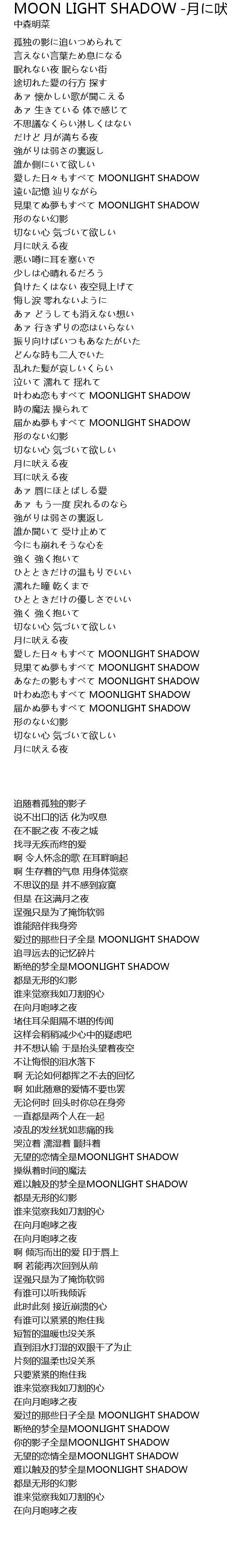 | [02:29.770] | 叶わぬ恋もすべて MOONLIGHT SHADOW |