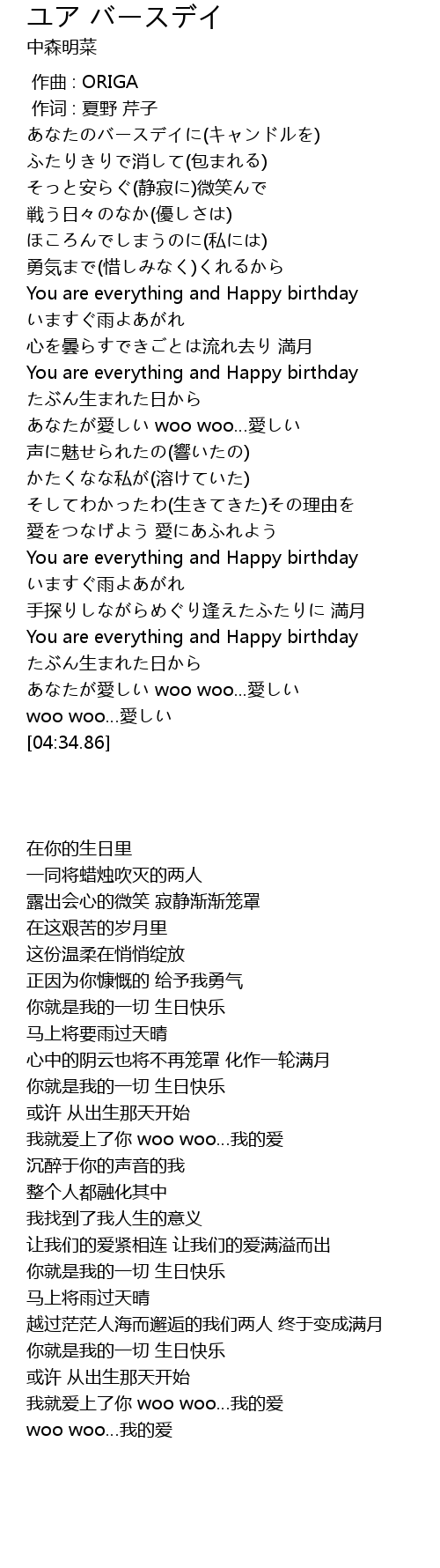| [02:54.78] | You are everything and Happy birthday |