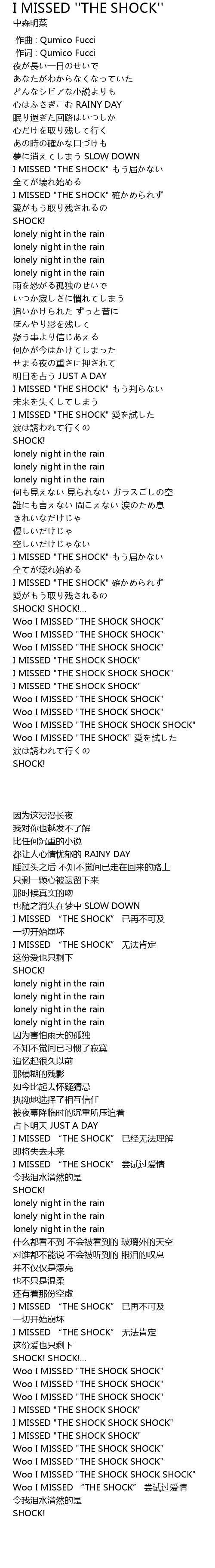 | [01:09.310] | I MISSED " THE SHOCK" jie |