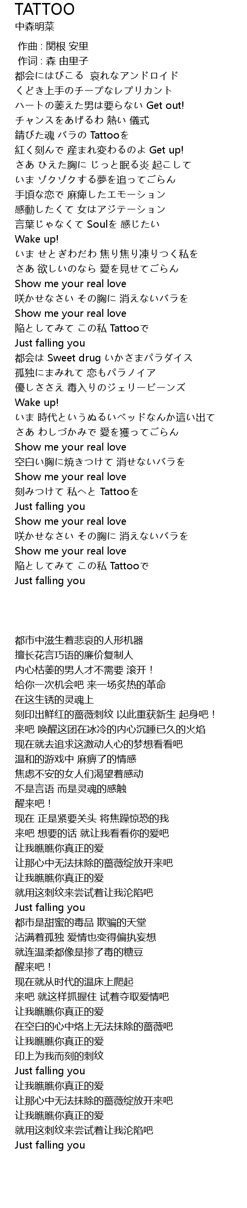 | [03:33.670] | 陥としてみて この私 Tattooで |