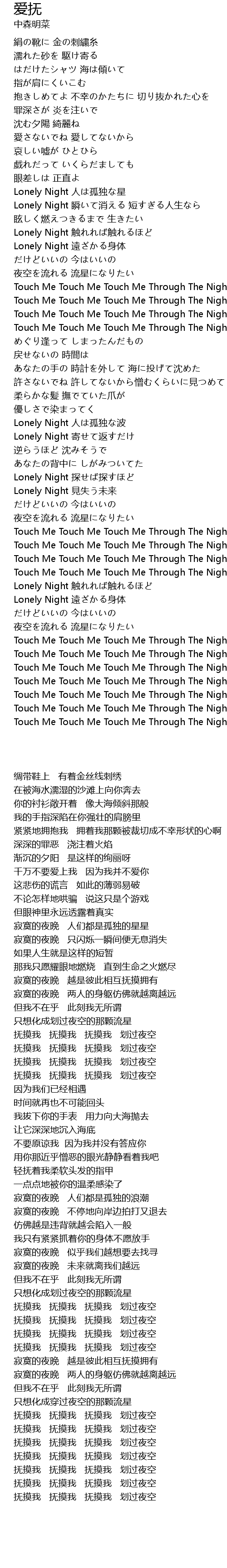 | [02:15.55] | Touch Me Touch Me Touch Me Through The Night |