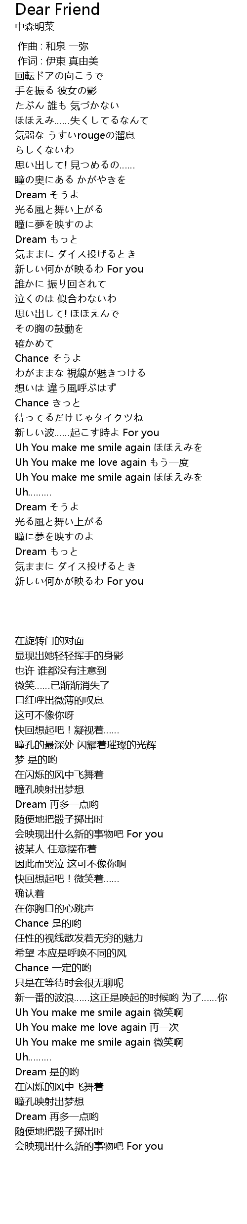 | [03:06.00] | Uh You make me smile again ほほえみを |