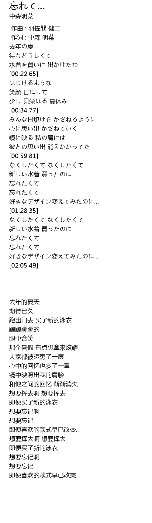 | [01:53.85] | 忘れたくて |
