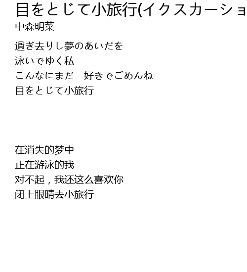 | Song | 目をとじて小旅行(イクスカーション)(Live) |