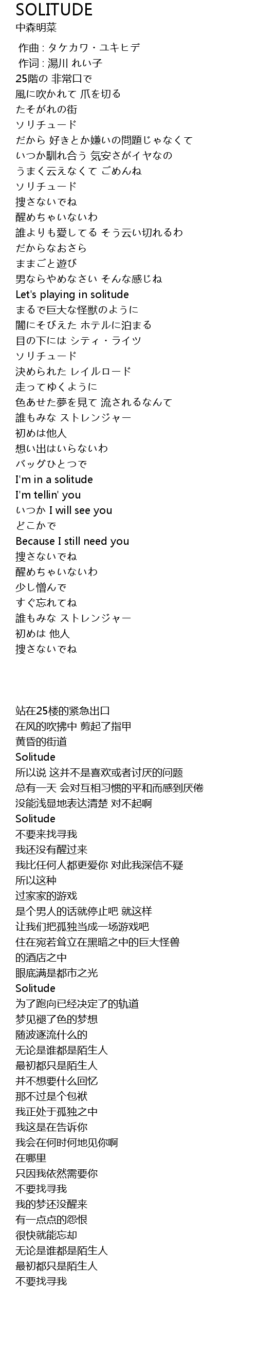 | Song | SOLITUDE |