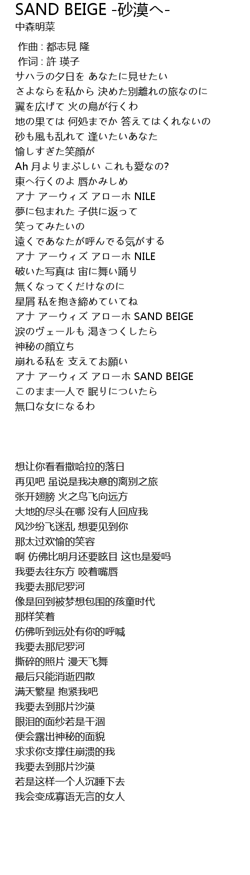 | [00:52.40] | 砂も風も乱れて 逢いたいあなた |