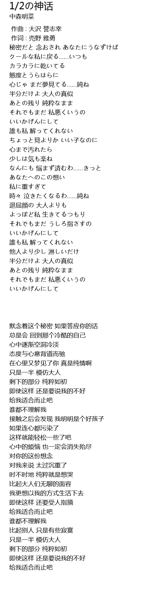 | Song | 1/2の神话 |
