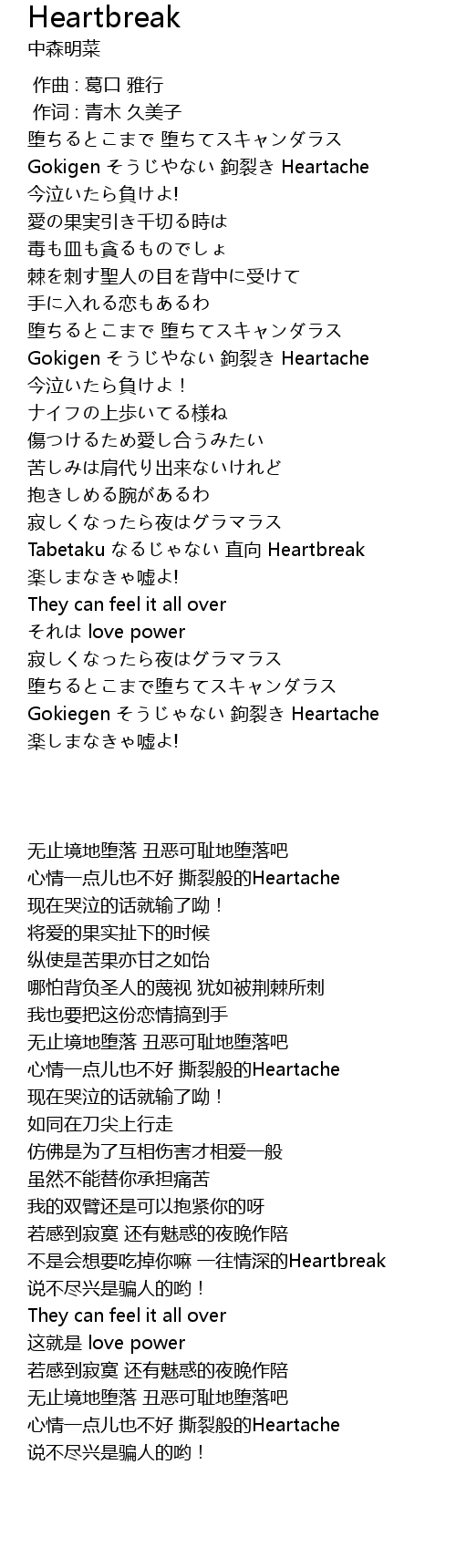 | [02:17.60] | Tabetaku zhí xiàng Heartbreak |