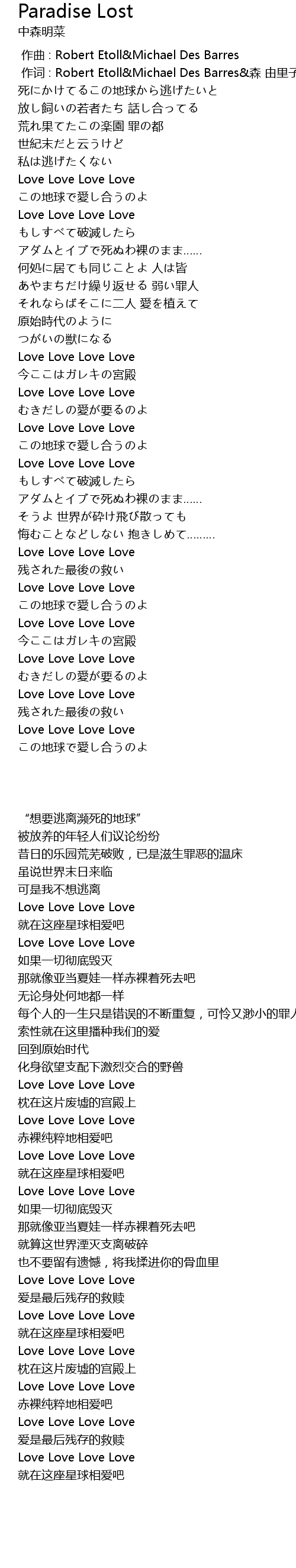| [00:01.00] | zuò cí : Robert Etoll Michael Des Barres sēn yóu lǐ zǐ yì cí |