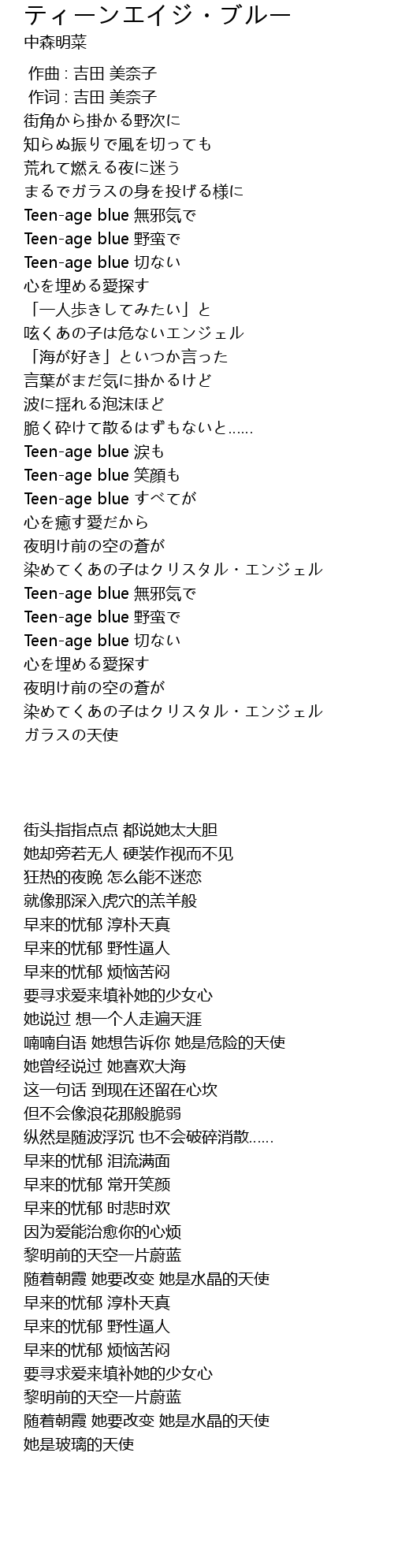 | [01:06.74] | Teen-age blue 切ない |