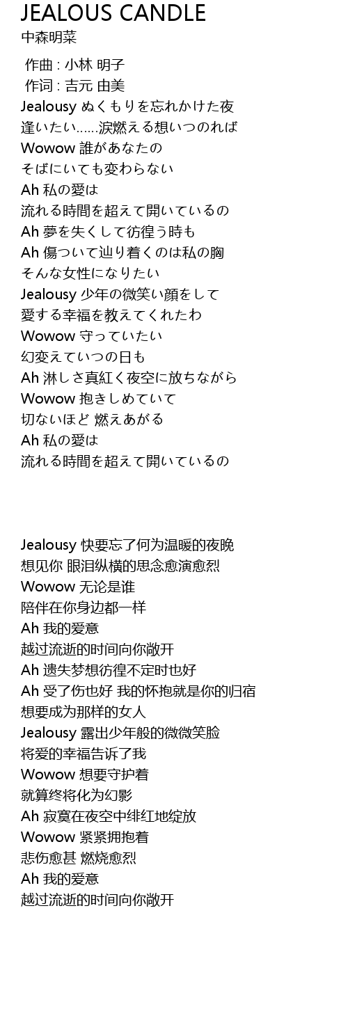 | [00:20.29] | Jealousy ぬくもりを忘れかけた夜 |