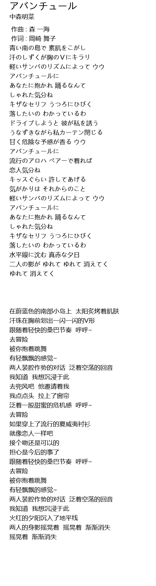| Song | アバンチュール |