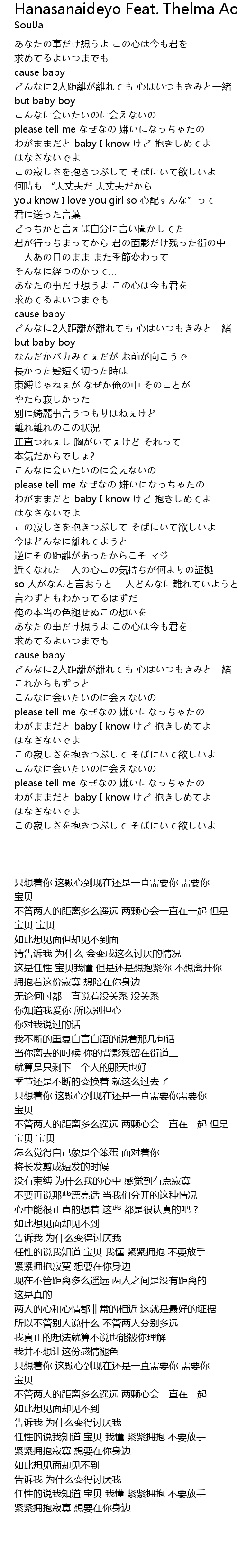 | [03:37.69] | わがままだと baby I know けど 抱きしめてよ はなさないでよ |