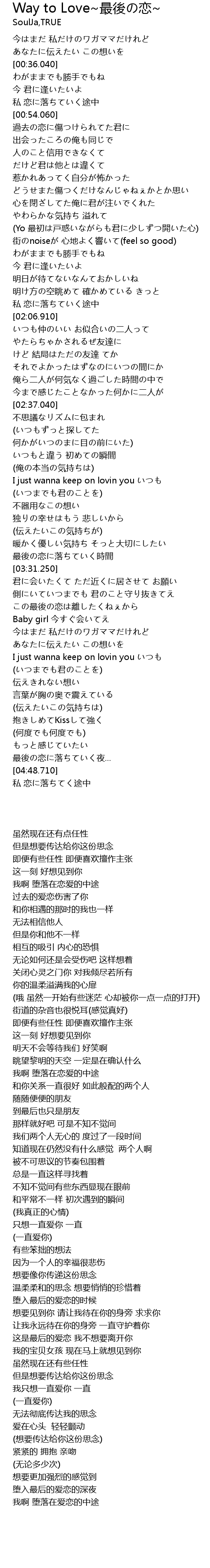 | [04:14.600] | I just wanna keep on lovin you いつも |