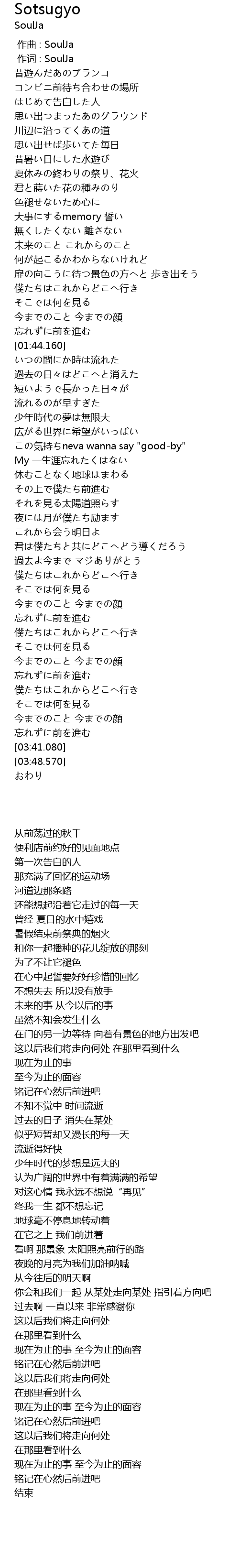 | [00:43.330] | 思い出つまったあのグラウンド |