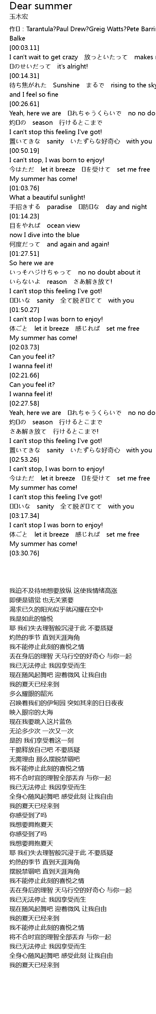 | [03:05.18] | My summer has come! |
