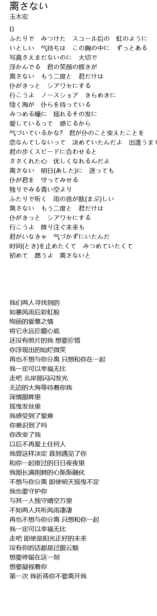 离さない もう二度と 君だけは |