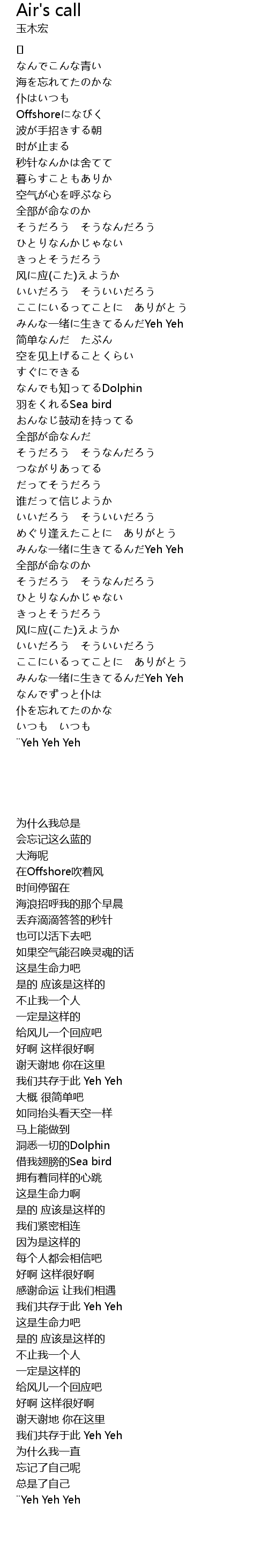 みんな一绪に生きてるんだYeh Yeh |