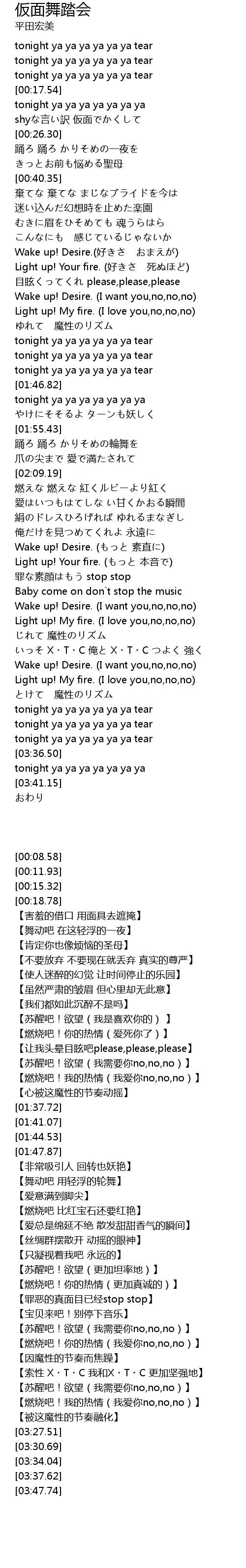 | [03:30.69] | tonight ya ya ya ya ya ya tear |