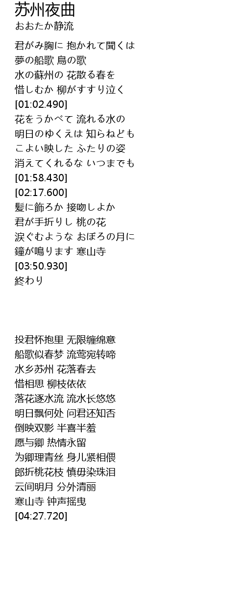 | [00:32.420] | 水の蘇州の 花散る春を |
