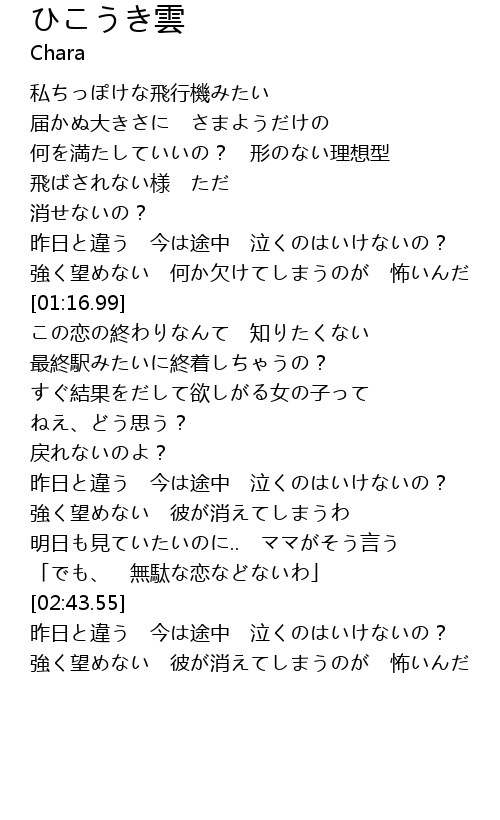 | [03:01.66] | 昨日と違う 今は途中 泣くのはいけないの? |