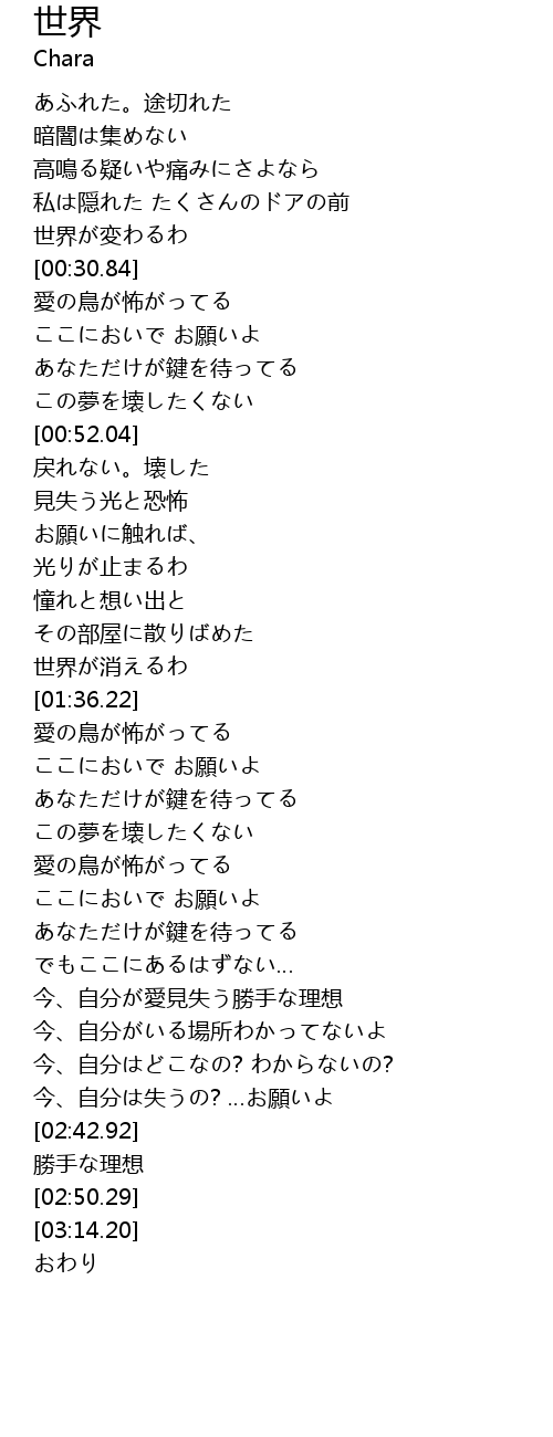 | [00:16.37] | 私は隠れた たくさんのドアの前 |