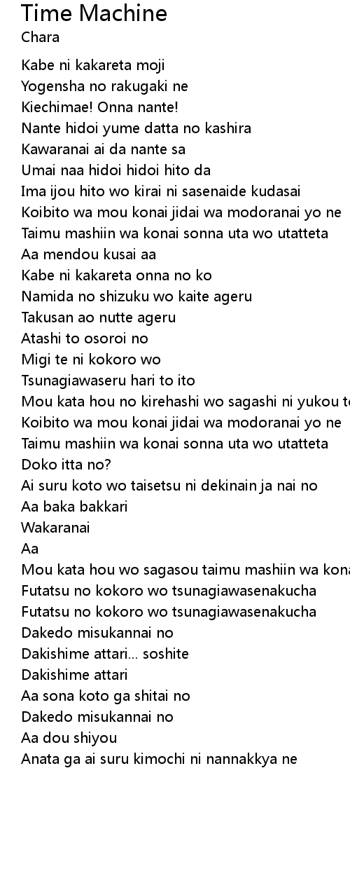 Taimu mashiin wa konai sonna uta wo utatteta |