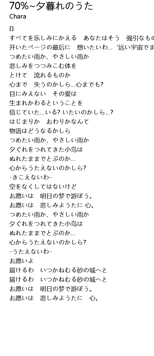 | Song | 70%~夕暮れのうた |