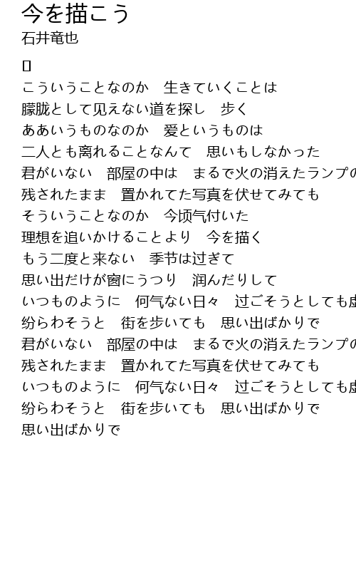 | 君がいない 部屋の中は まるで火の消えたランプの样で | |