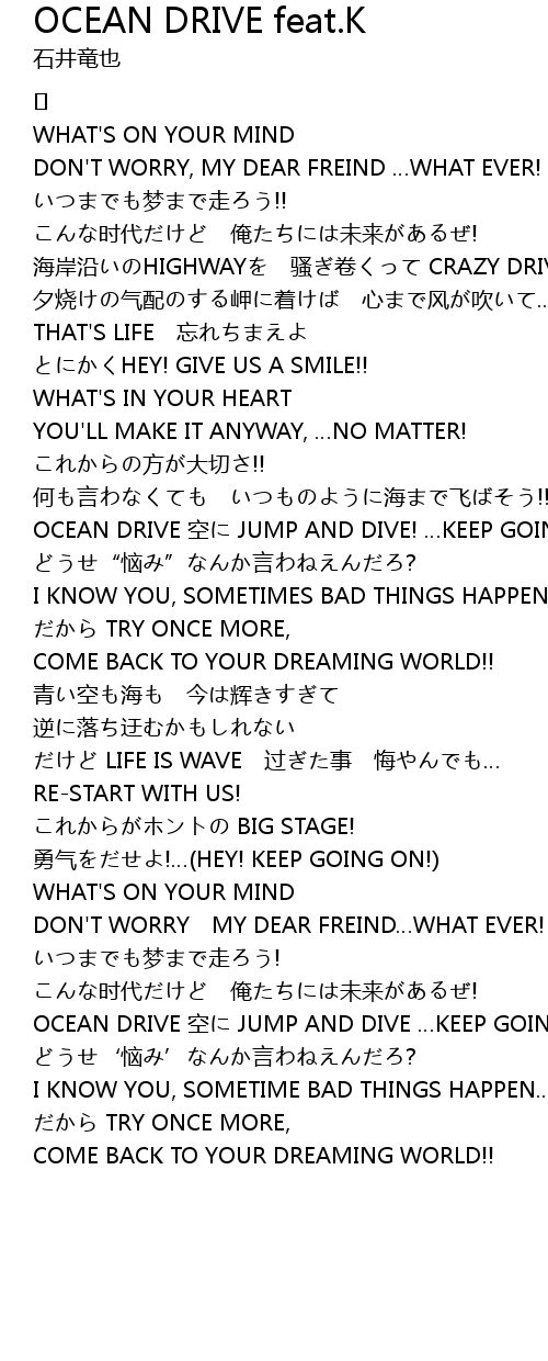 | Song | OCEAN DRIVE feat.K |