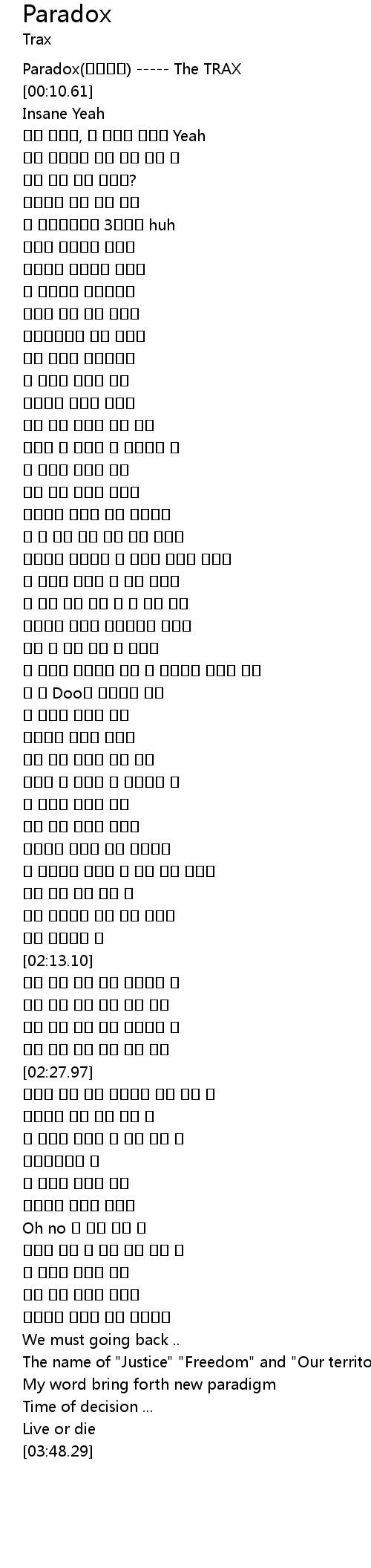 | [00:00.00] | Paradox(파라독스) ----- The TRAX |