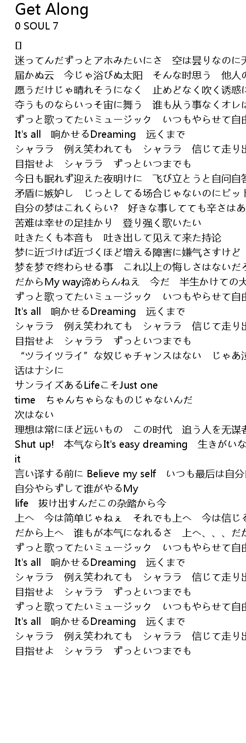 | Shut up! 本气ならIt's easy dreaming 生きがいなら信じDon't miss it | |