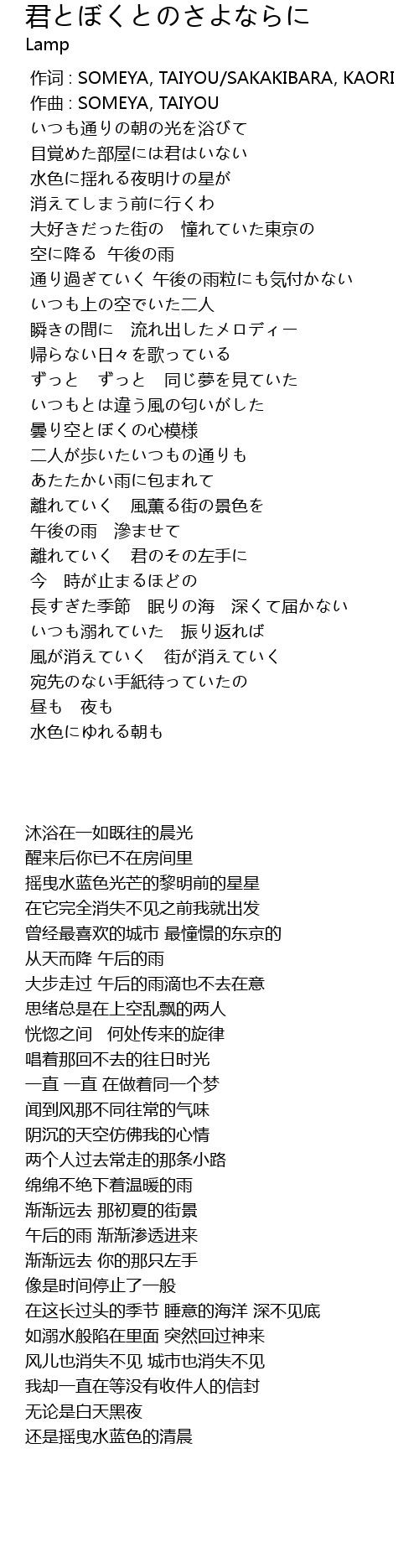| [00:00.000] | 作词 : SOMEYA, TAIYOU/SAKAKIBARA, KAORI |