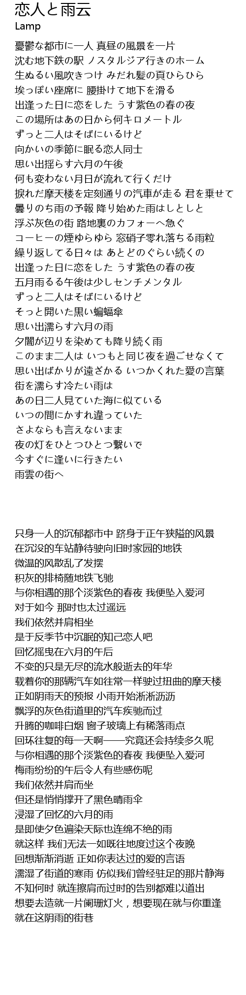 | [02:03.00] | 曇りのち雨の予報 降り始めた雨はしとしと |