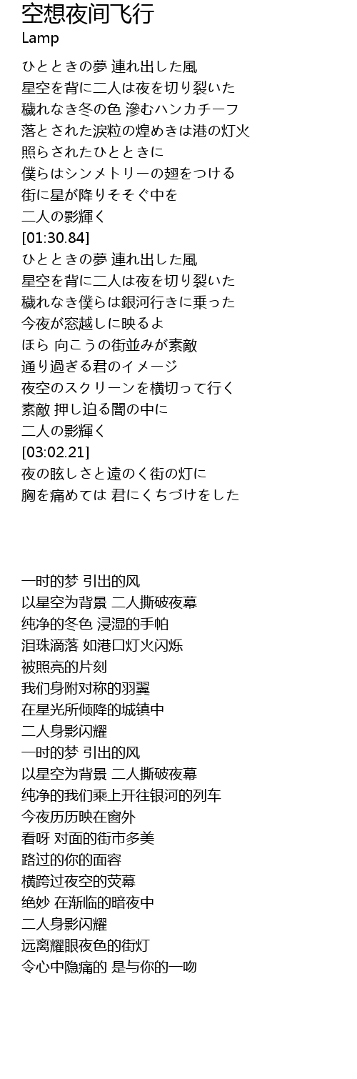 | Song | 空想夜间飞行 |