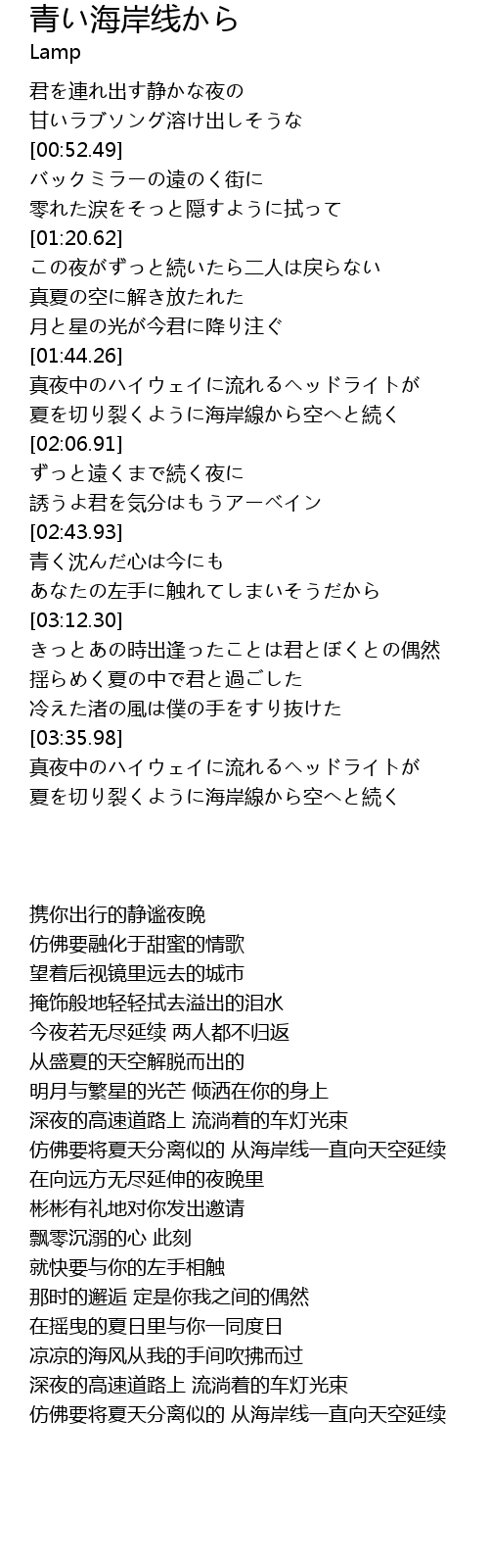 | [03:45.39] | 夏を切り裂くように海岸線から空へと続く |