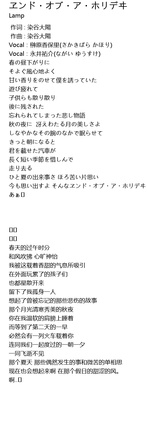 | [03:50.08] | 今も思い出すよ そんなヱンド・オブ・ア・ホリデヰ |