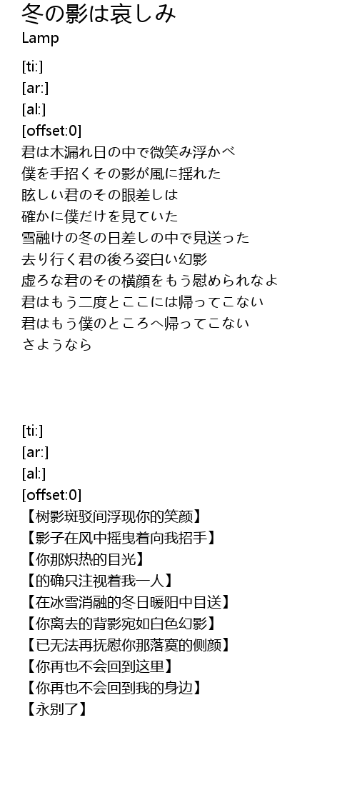 | [00:29.34] | 僕を手招くその影が風に揺れた |