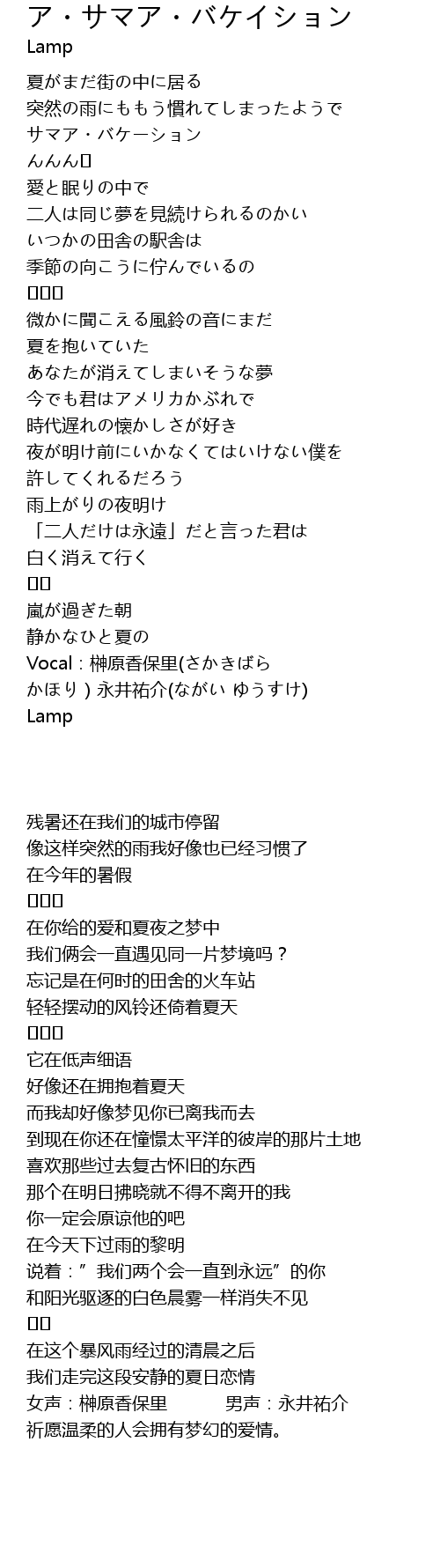 | [04:04.35] | Vocal:榊原香保里(さかきばら かほり)永井祐介(ながい ゆうすけ) |