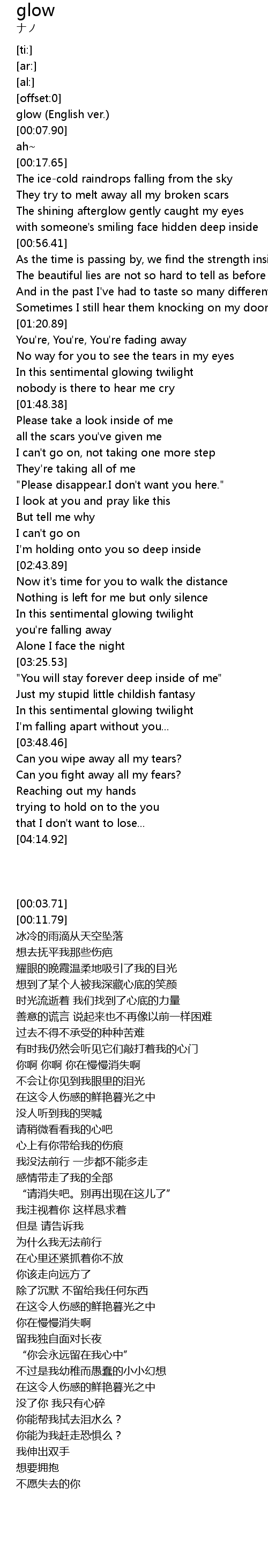 | [00:03.71] | glow (English ver.) |