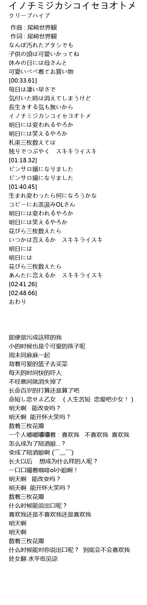 | [02:31.24] | あんたに言えるか スキキライスキ |