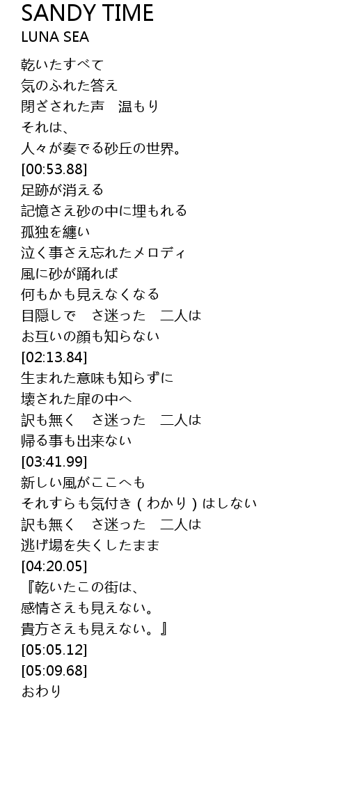 | [01:14.15] | 記憶さえ砂の中に埋もれる |