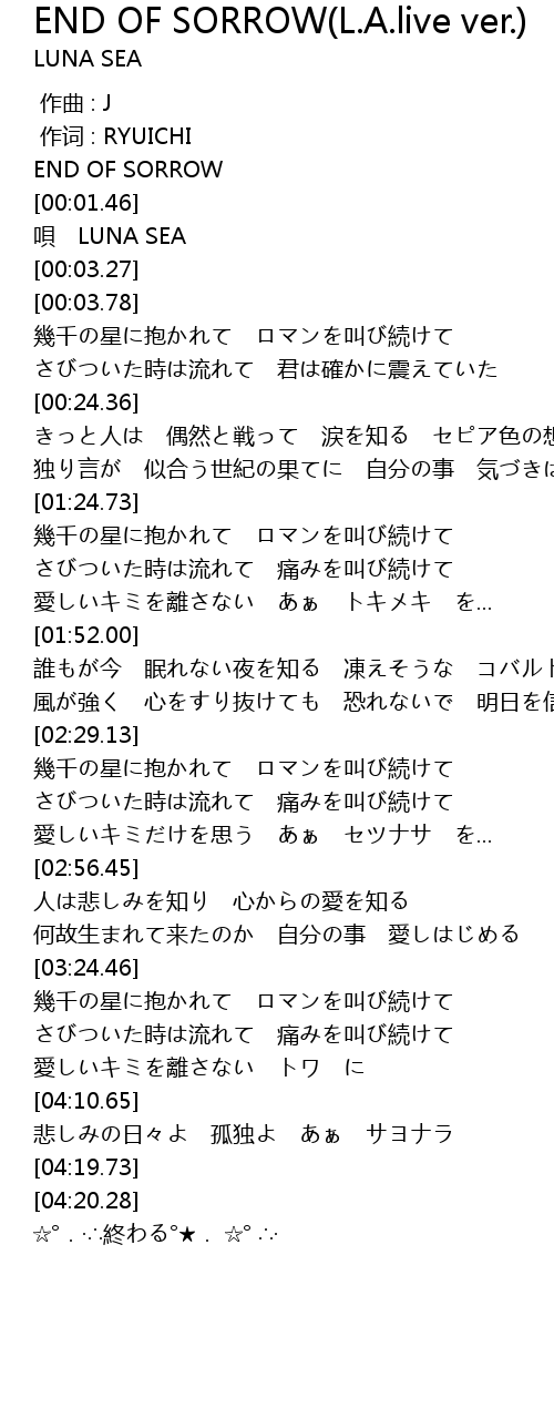 | [04:20.88] | ☆°.·∴終わる°★. ☆° ∴· |