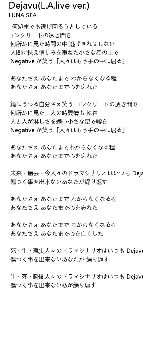 | 未来・過去・今人々のドラマシナリオはいつも Dejavu | |