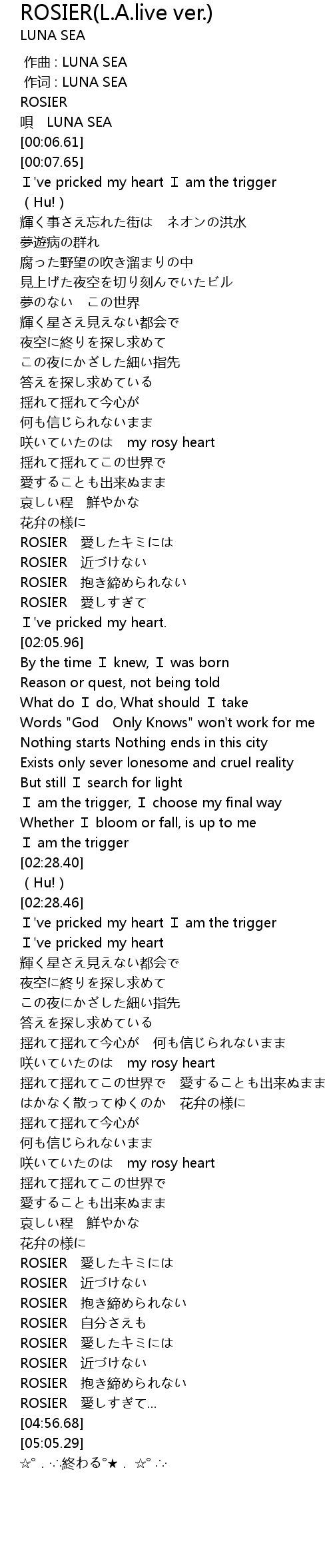 | [03:59.69] | 咲いていたのは my rosy heart |