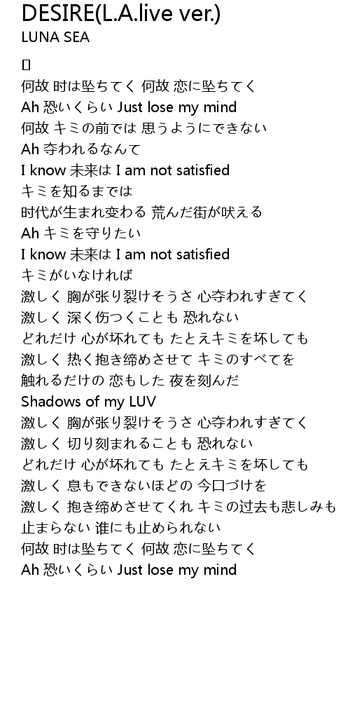 | 激しく 胸が张り裂けそうさ 心夺われすぎてく | |