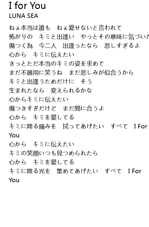 | [02:55.92] | キミに降る痛みを 拭ってあげたい すべて I For You |