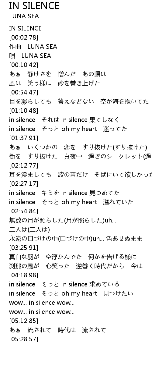 | [04:33.41] | in silence そっと oh my heart 見つけたい |