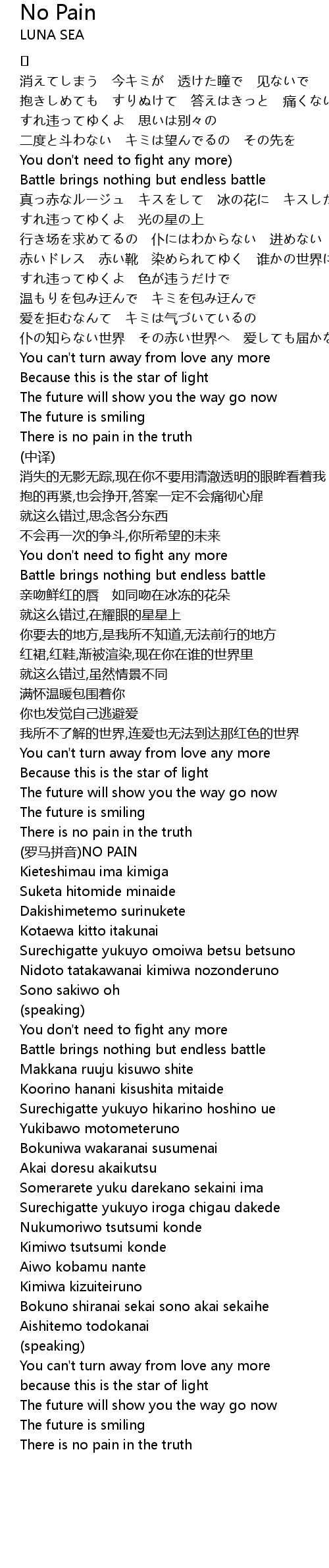 | (罗马拼音)NO PAIN | |